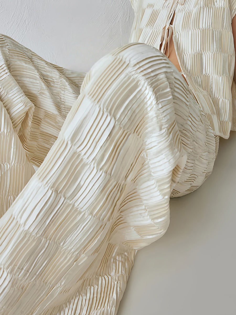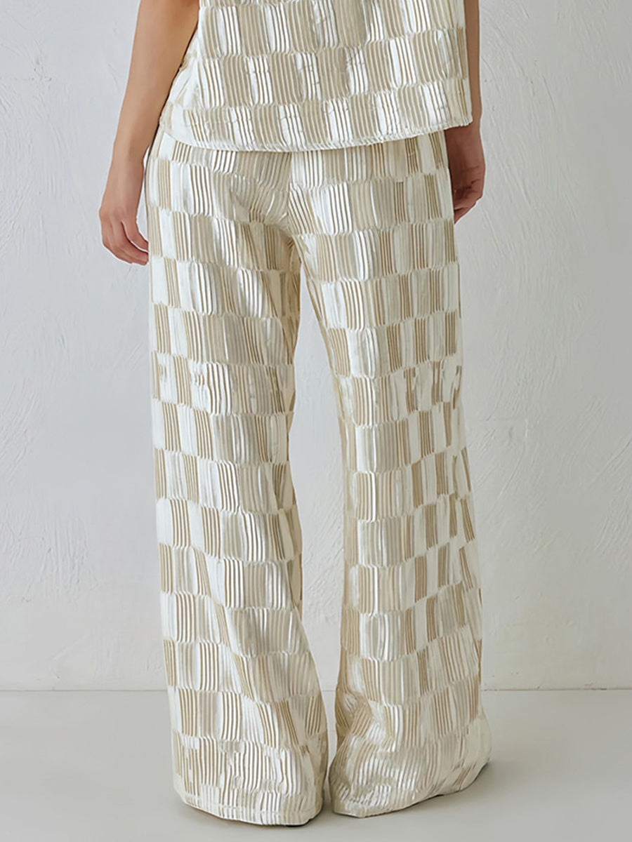 Checkerboard Pleated Wide Leg Pants
