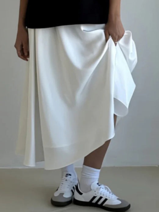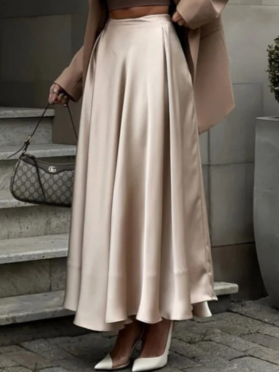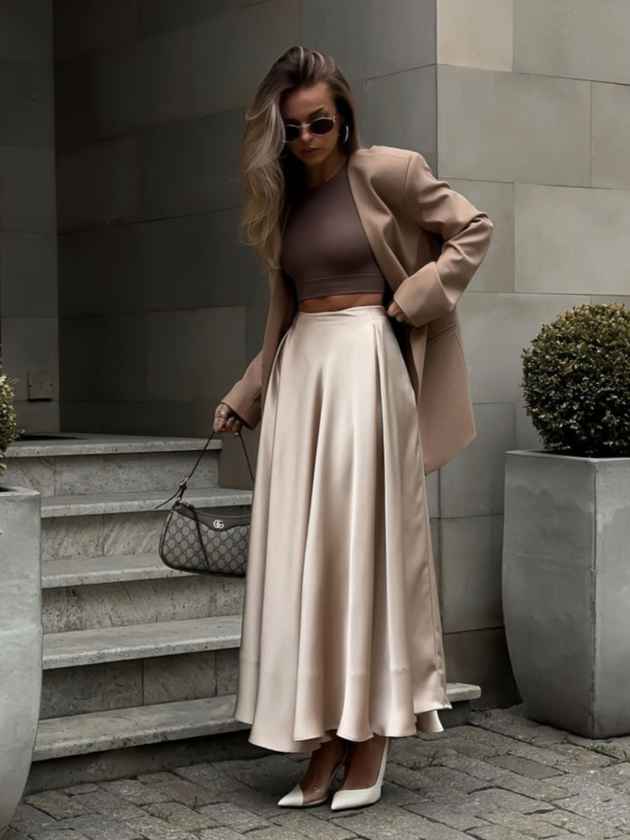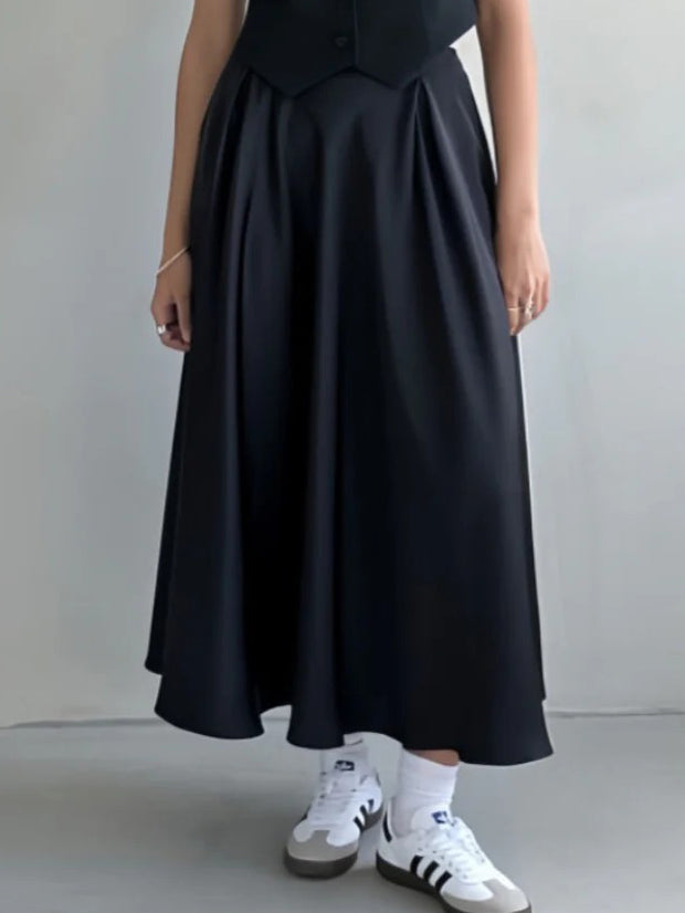 Introducing our Satin Pleated A-line Flowy Maxi Skirt - the perfect combination of elegance and comfort! Made with luxurious satin and featuring a flattering A-line cut, this skirt will flow gracefully with every step. Perfect for any occasion, it's sure to turn heads and make you feel like a queen!