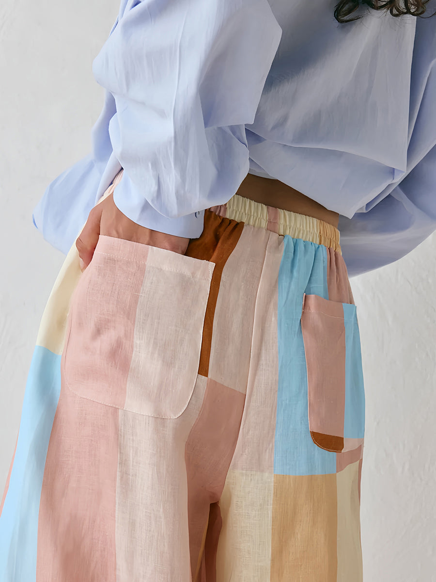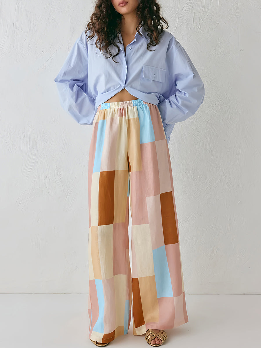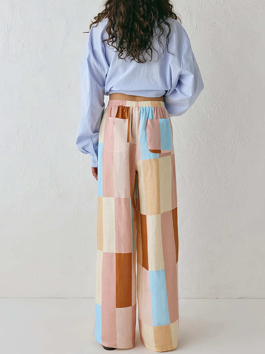 Elevate your wardrobe with these Colorblocked Plaid Wide Leg Pants, designed to blend classic plaid with modern colorblocking for a bold, stylish look. The wide-leg cut offers comfort and effortless movement, making them perfect for casual outings.