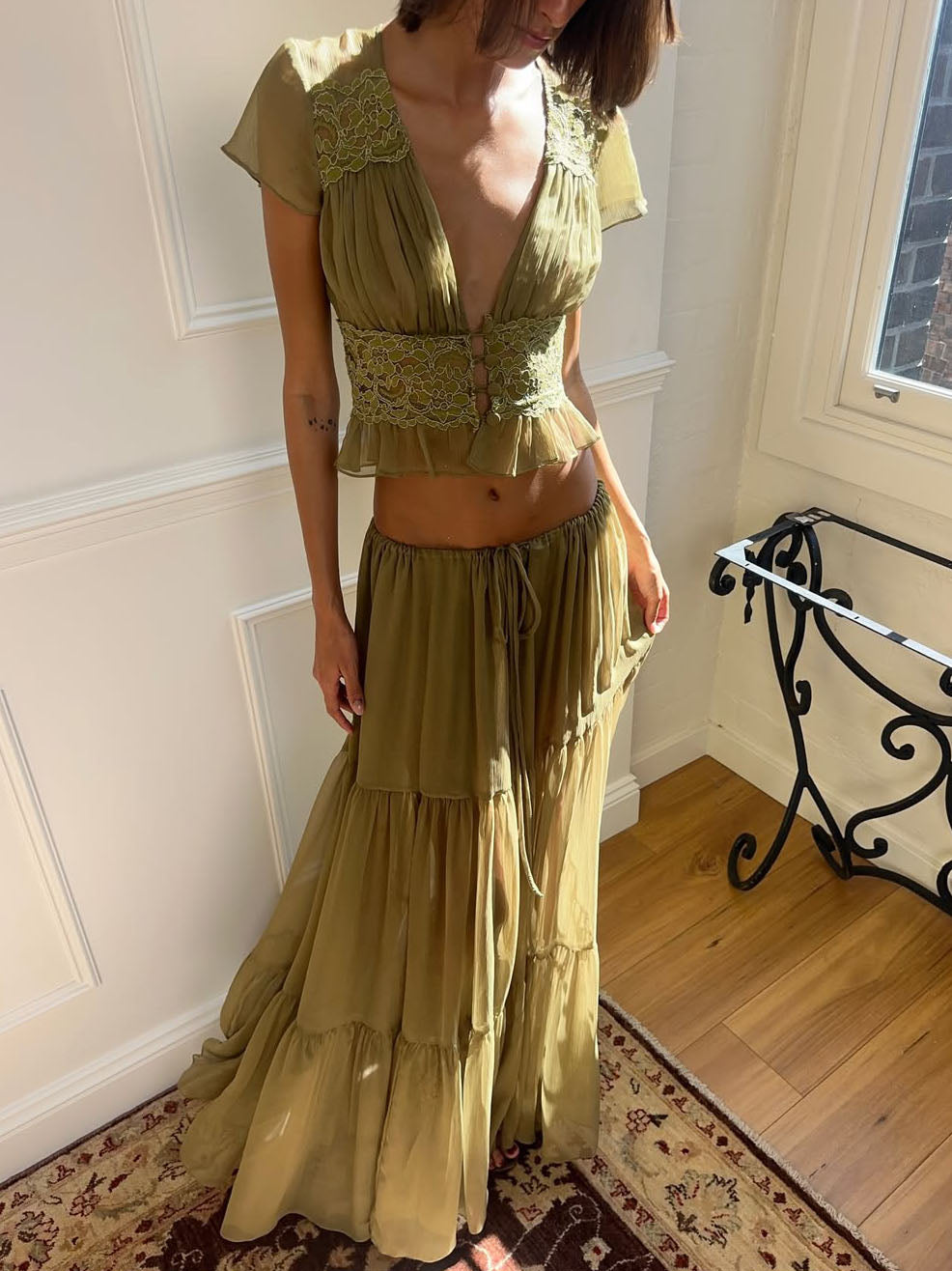 Elegant Lace Two Piece Skirt Set