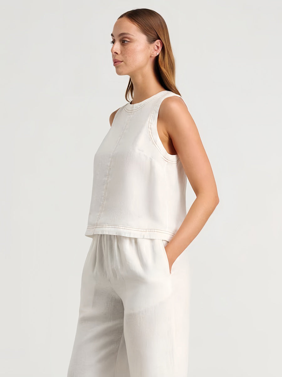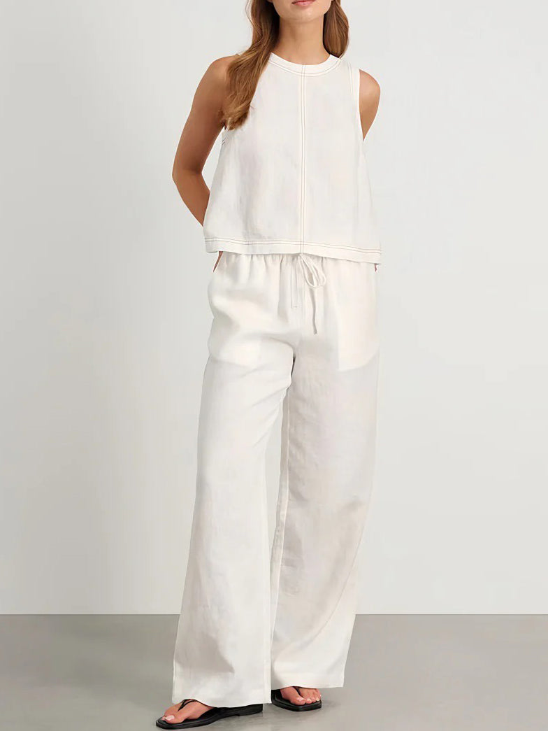 Elevate your wardrobe with this sophisticated Sleeveless Back Split Wide Leg Pants Set. The sleeveless top offers effortless comfort while the dramatic back split adds unexpected flair. Paired with flowing wide-leg pants that create a stunning silhouette.