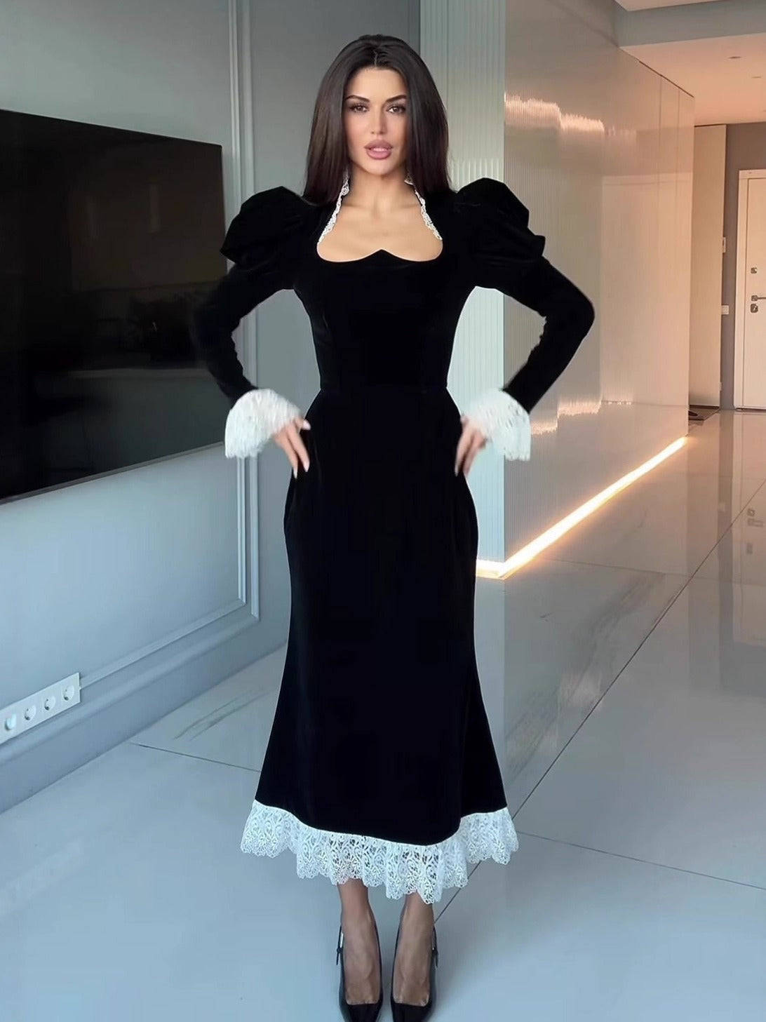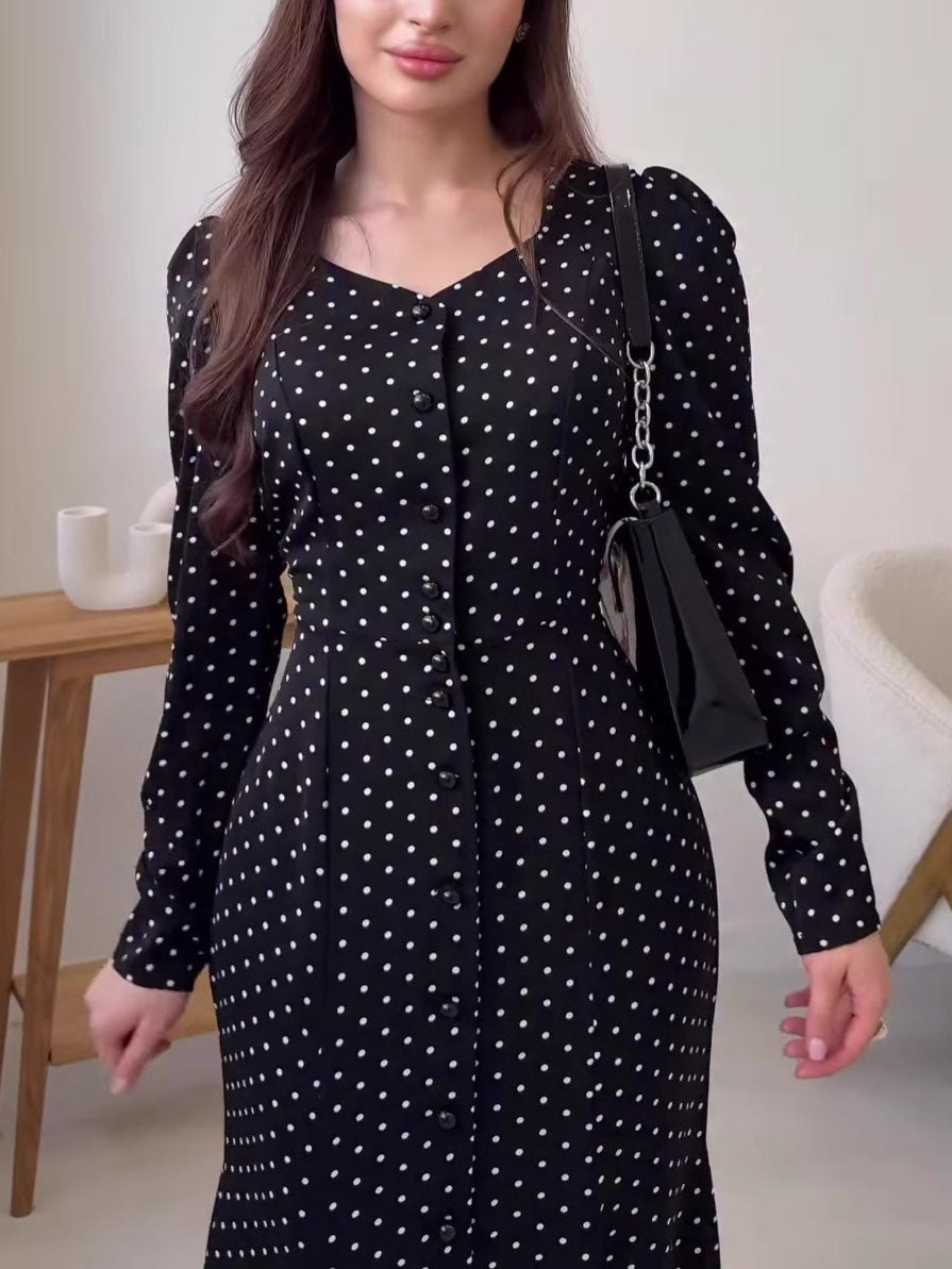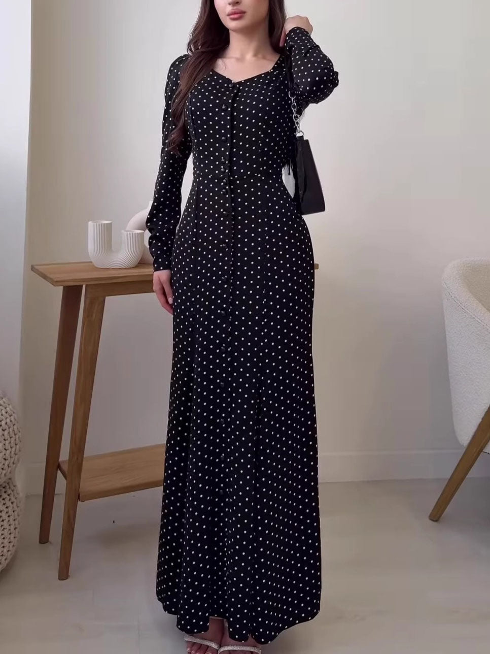 Robe mi-longue à manches lanternes et imprimé graffiti, nouée à la taille