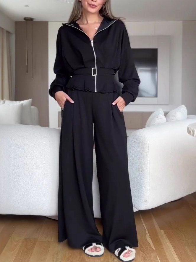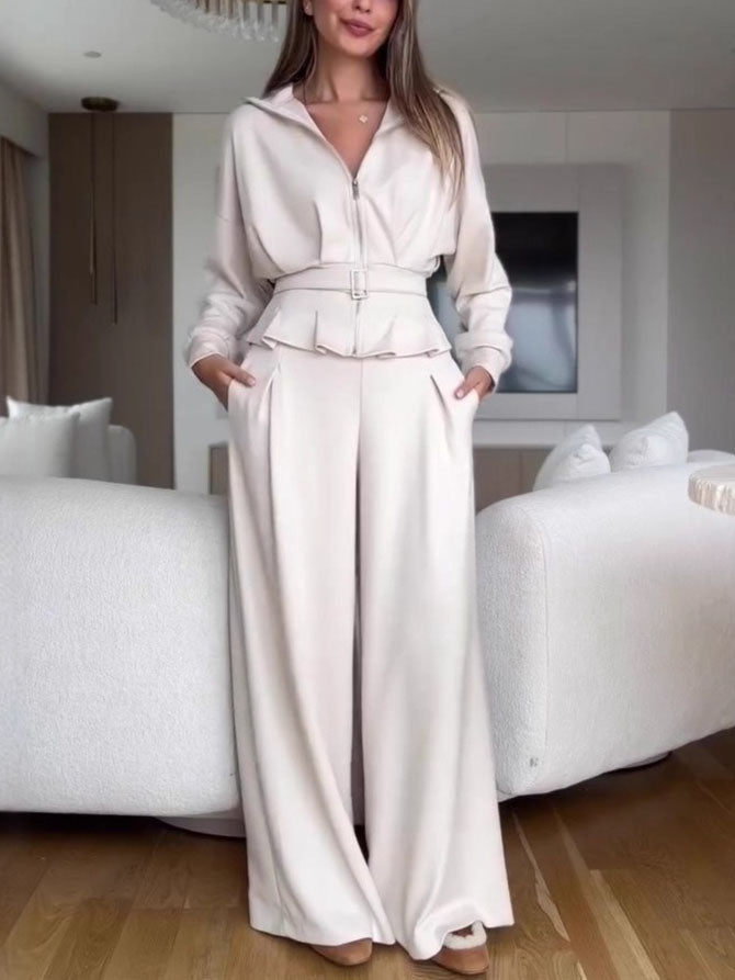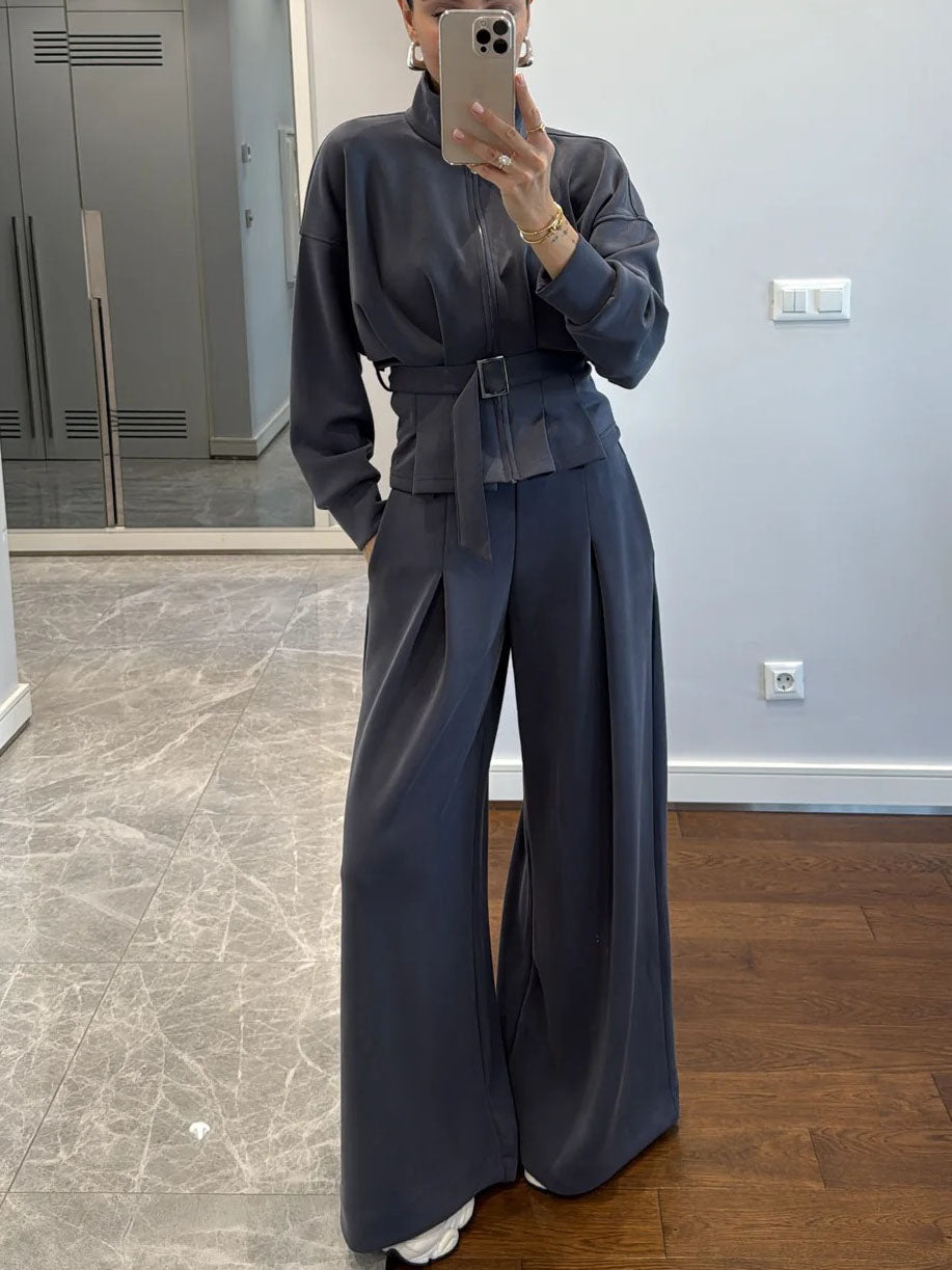 Ensemble élégant avec jupe unie et liens croisés dans le dos