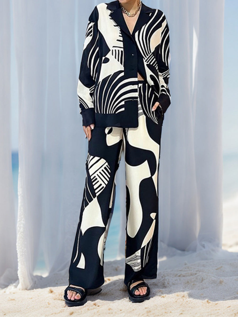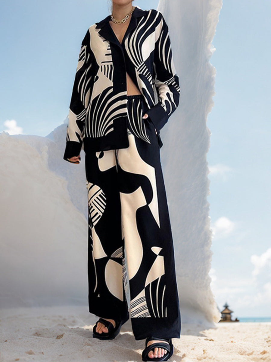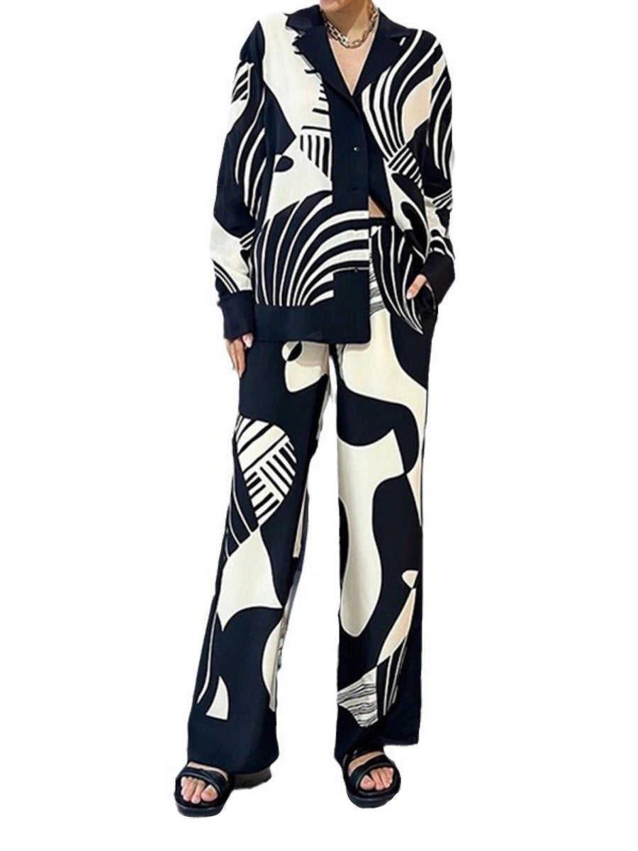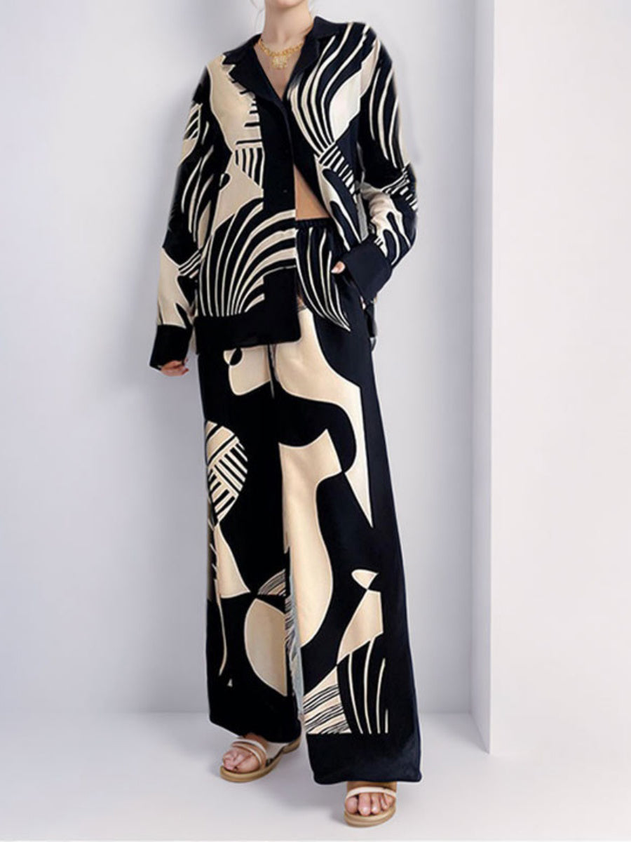 Soyez la fashionista ultime avec notre ensemble chemise et pantalon noir à imprimé chic ! Cet ensemble élégant arbore un imprimé chic qui fera tourner les têtes où que vous alliez. Idéal en toute occasion, cet ensemble vous donnera confiance en vous et vous permettra de conquérir le monde avec son style tendance et unique.