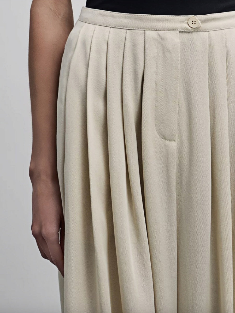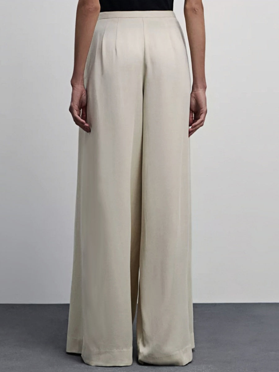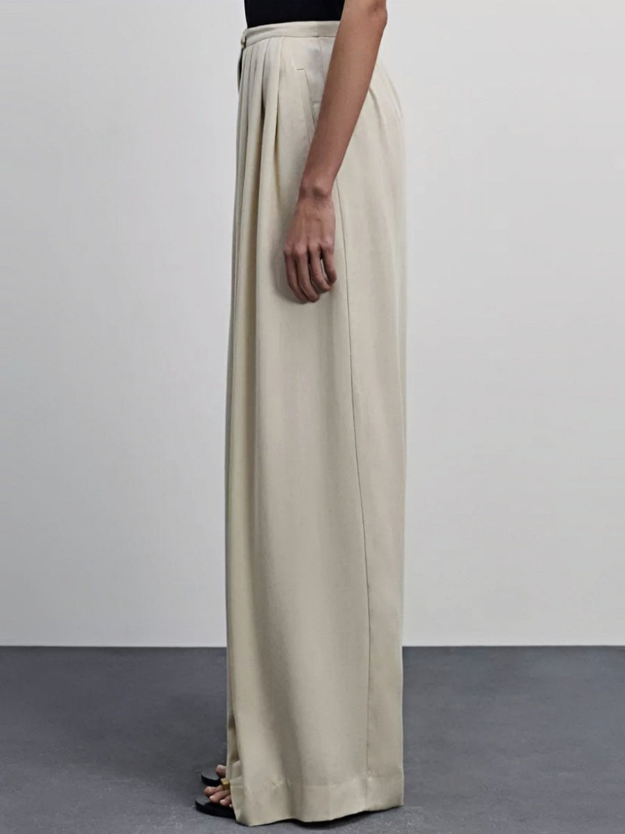 Adoptez un style décontracté avec notre pantalon drapé à jambes larges et plissées. Ce pantalon présente un design plissé chic et une coupe ample flatteuse, parfait en toute occasion. Restez à l'aise et stylé avec cet incontournable de votre garde-robe !